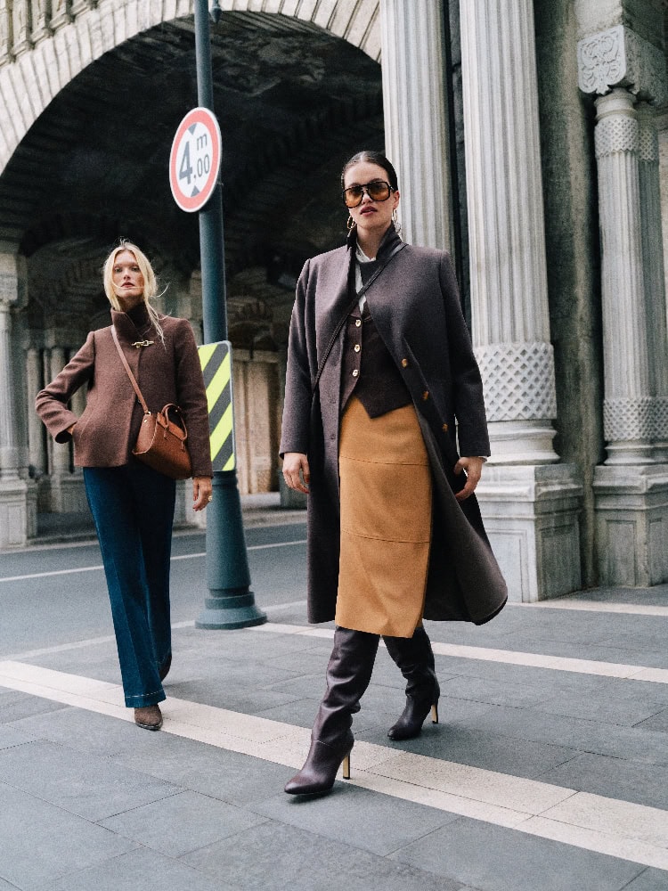 Koleksiyonun dış giyim parçaları gardıropların başrolünde yer alıyor. Geniş formlu kabanlar güçlü bir silüet yaratırken, zarif alternatifler şehir hayatının şıklığını tamamlıyor. Çıtır çiçek desenleri koleksiyona enerji katıyor ve şal desenler modern yorumlarla yeniden hayat buluyor. Klasik ekoseler ise çağdaş dokunuşlarla güncelleniyor.