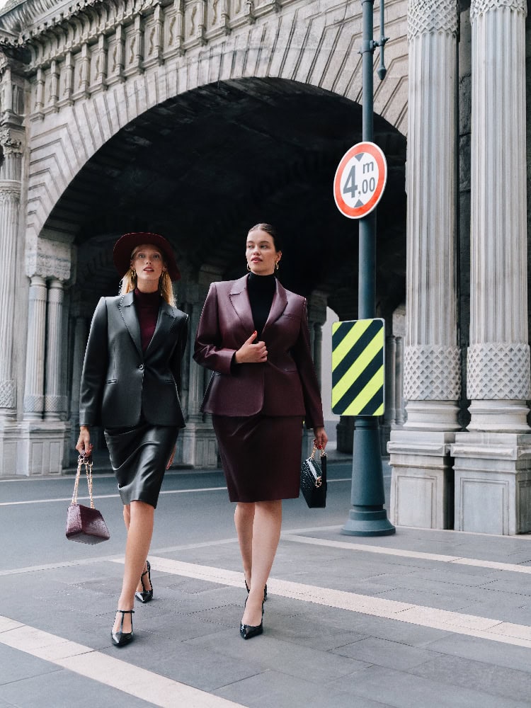 Gabardin takımların net çizgileri, yelek kombinlerin modern tavrı ve deri detayların güçlü vurgusuyla Love my body, kadınını kendinden emin, ne istediğini bilen bir karakterle öne çıkarıyor. Trikoların sıcak dokunuşu, tek parça elbiselerin zamansız şıklığı ve satenin lüks ışıltısı ise sezona rafine bir dinamizm katıyor.