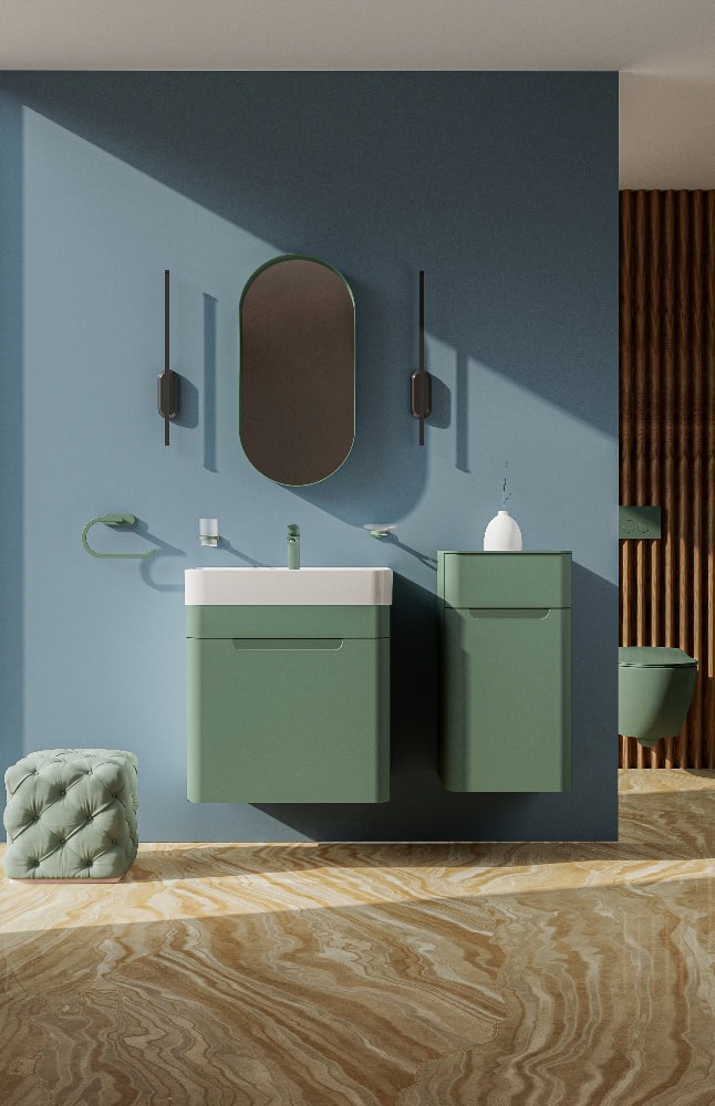 Banyo tasarımında renk, atmosferi belirleyen en etkili unsurların başında geliyor. Özellikle sıcak ve derin tonlar, mekânda samimi, dengeli ve zamansız bir etki yaratıyor. Creavit Colorit serisi; Nil Yeşili, Berry, Cappuccino, Ocean ve Şeftali Tüyü gibi özenle seçilmiş renk alternatifleriyle banyolara canlılık katarken sofistike bir bütünlük sağlıyor. Doğadan ve çağdaş yaşamdan ilham alan bu renk paleti, sade yüzeylerle buluştuğunda güçlü ama göz yormayan bir estetik oluşturuyor.